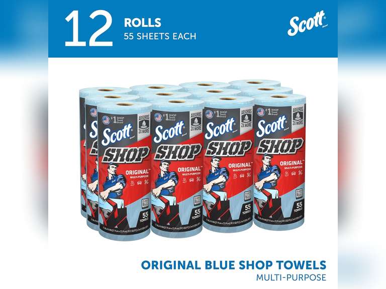 Title: Scott Shop Original Blue Towels (75147), 9.4"x11" Cloth-like Paper Towel (12 Rolls of 55 Sheets, 660 Sheet Total) Model: 75147 ASIN: B0035BTQ06 55 Towels/Roll; 12 Rolls of Scott Shop Towels Original/Case; 660 Towels/Case; Original Blue Shop Towels; 9.4"x11" sheets These multi-purpose blue shop towels are designed for cleaning up grease, absorbing liquids, oils and spills in automotive repair shops and garages Absorbs 2X more than the leading value brand shop towel; durable and work well even when they're wet Soft, cloth-like towels designed for tough jobs but soft enough to use on hands (not for use on compromised skin) Available in a portable roll or Pop-Up Box format for on-the-go jobs.